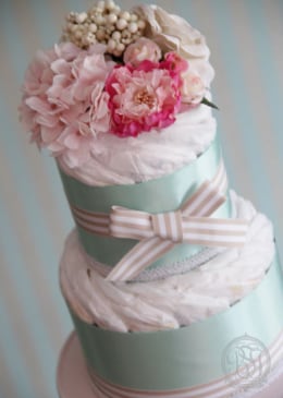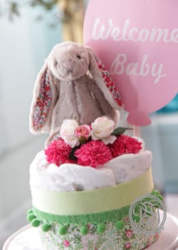 二段のダイパーケーキ(おむつケーキ)の作り方をレッスンします。
